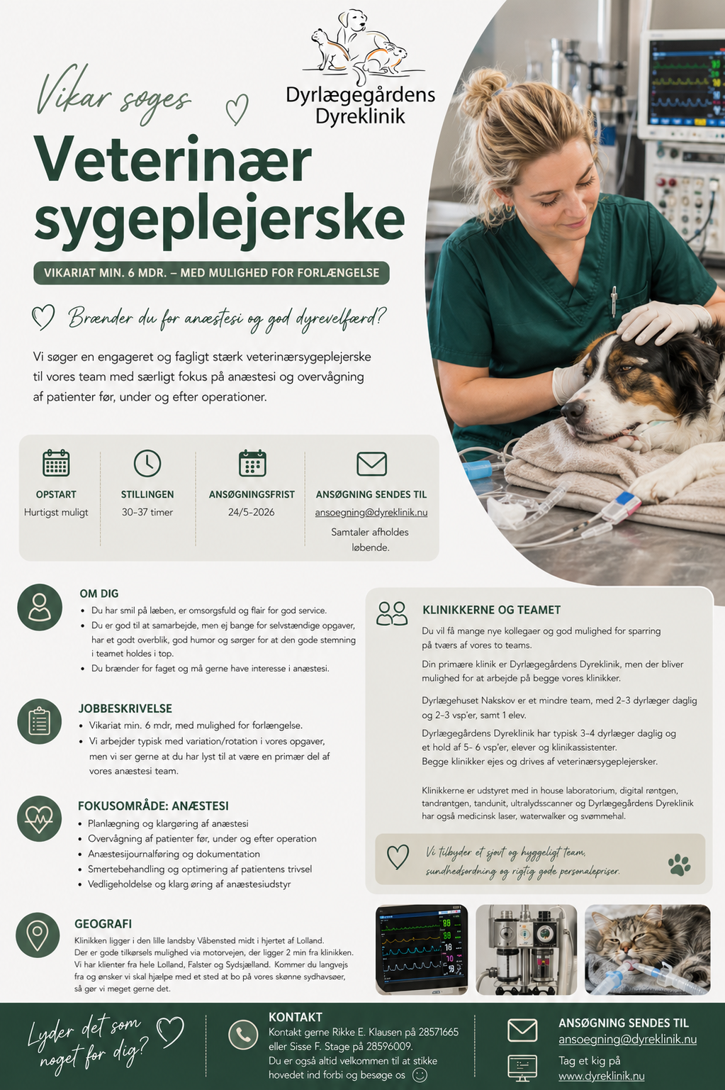 👍Veterinærsygeplejerskernes tillidsrepræsentant på det norske Frederikstad Dyrehospital hedder Jeanette Dahl.